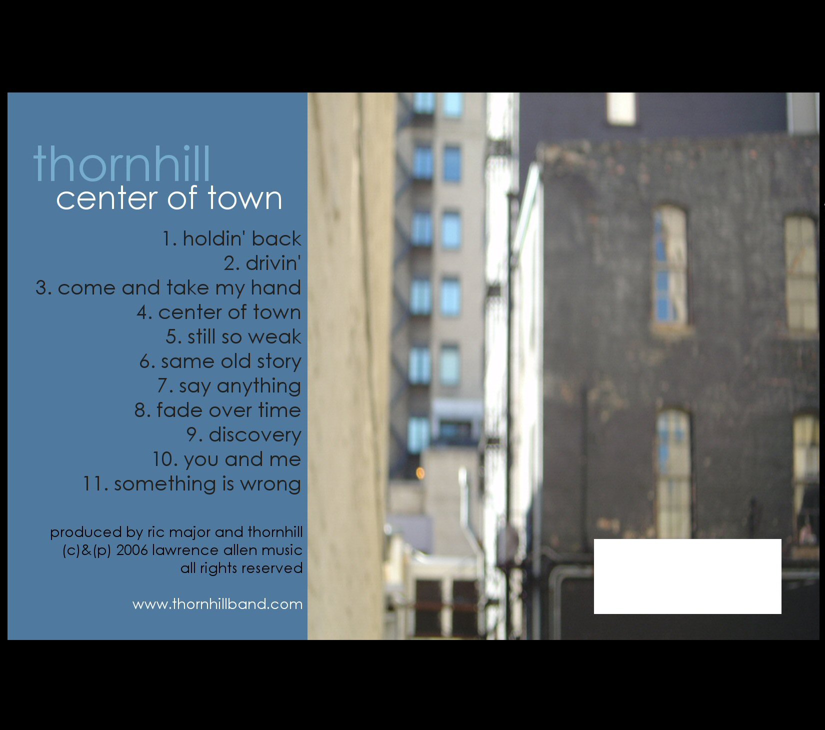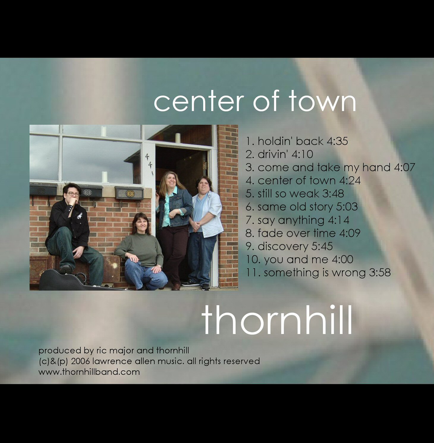 Thornhill is extremely proud to present its first cd, Center Of Town, featuring eleven tracks of Thornhill penned originals.